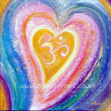 This mixed medium painting on deep edge canvas is full of love and light as the Aum symbol is shining out this divine love to you in yellows, pinks, purples, greens and blues with a hint of gold and sparkle. The perfect painting for your theraphy room, yoga studio, work space, home or retreat.