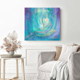 A mixed medium painting on deep edge boxed canvas with a hint of sparkle and gold, ready for your walls to uplift any space in your home, workspace, yoga studio or meditation room