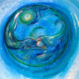 Dive deep like the mermaids - deep into the ocean and deep into your heart. This is a tranquil blue image of a mermaid diving into the deep blue ocean accompanied by her dolphin friends . Blue art print for tranquillity and meditation.