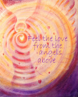 This painting of the Angel of Love opening her angel wings and shining out her love and healing to the world with the inspirational words - 'Feel the love from the angels above' written on the image to remind us the angels are always there for us.