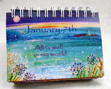 I was absolutely delighted to receive two  of Annie’s beautifully packaged perpetual calendars, one for a friend of mine as a Xmas Present  and one for myself.  Upon opening the parcel I first of all noticed the high quality of the paper and print;  the calendar stands up really well and the pages turn effectively.  Most of all of course, I am enthralled with the wonder-full artwork and truly inspirational daily quotes.   Every morning it’s a joy to turn the page for the current day and be instantly uplifted! Thank you so much Annie, you are a star. Such a lovely calendar and much love and angel blessings to you  Elisabeth xxx