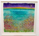 Cornish wild flowers dance happily above a Cornish cove under a new moon.
