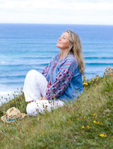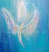 'Rainbow angel of light 'an original painting of the magical blue angel with open angel wings shining out the light with a touch of iridescent paint and sparkle to uplift any room and remind us our angels are always by our side for guidance and healing.