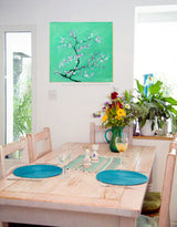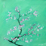 oil painting on deep edge box canvas with a hint of sparkle ready for your walls - bringing peace and tranquillity to any space. Cherry blossom helps reminds us of the impermanence and beauty of life.