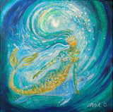 The mermaid swims with her dolphin deep within the magical ocean, reminding us of our inner mermaid and times of Atlanta