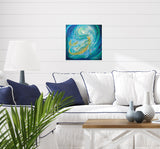 A small original painting in mixed media on deep edge boxed canvas with a hint of gold and sparkle ready for your home, office, meditation room or treatment space
