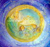 Moon spirit blows star blessings over the children as they sleep in this magical painting full of love and wonder.