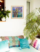 Painted in mixed medium on water colour paper and is mounted and framed with a natural wooden framed ready to place in your home or work place