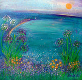 Magical purple and white agapanthus flowers dance above the tranquil turquoise bay of St. Ives in Cornwall taking you right to the peacefulness of the ocean.