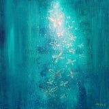 Caribbean blue  II fine art giclee print. This magical image was created as part of a set of three paintings of the white butterflies flying over the turquoise Caribbean ocean inspired by a magical event that occurred on our wedding day, when just before the ceremony thousands and thousands of white butterflies were seen flying over the ocean and beach where our ceremony was taking place.
