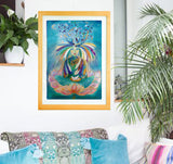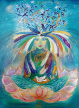 The fine art print of annie b.'s painting- Goddess of the birds - freedom' and brings in the energy of the birds to uplift and inspire .to teach us to be free.. to take flight.. be who you really are. Feel her power and let her fill you and your home with love and confidence .