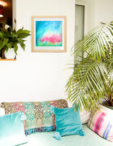 A soft dreamy image in pinks blues and greens in a Monet painting style to bring peace and tranquillity to any space