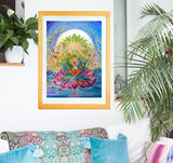 This painting depicts the magic and wonder of Goddess Gaia - Mother earth in her true Divine beauty. The painting celebrates the love she shines, her bountiful abundance and deep nurturing energy.