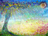 This beautiful print of the magical Goddess Ostara, Goddess of the Spring Equinox when night and day are equal. She begins to awaken mother earth celebrating the dance of life Gaia as everything is coming alive helping us connect with our inner goddess and mother earth and the union of all. A wonderful painting for your walls, yoga studio, office or home.