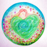 A goddess sits in a meadow of wild flowers full of love contemplating what she is thankful for. A painting to remind us having gratitude for all the little things brings us to the moment and to joy.