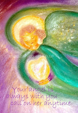 A golden angel with a golden heart image with the message - 'Your angel is always with you, call on her anytime' - to remind us that our angels are always there for us, we just have to call them. Angel inspirational word print.