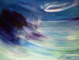 An angel flies over the turqoise ocean, light and free like the spray from the ocean waves. Turquoise, blues and aquamarine colours. bring calm and joy to any space.