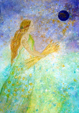 This beautiful painting incorporates the characteristics of Virgo the earth sign and relating planets.... and is painted in mixed medium on heavy watercolour paper in acrylic with a touch of gold and sparkle. Virgo, the sixth sign of the zodiac, - August 23rd and September 22nd. They can be virtuous, intelligent, generous, optimistic and kind.