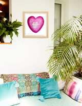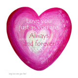 Love you just as you are, always and forever- quote art print on a fuchsia pink heart, the perfect anniversary or wedding gift for your loved ones.